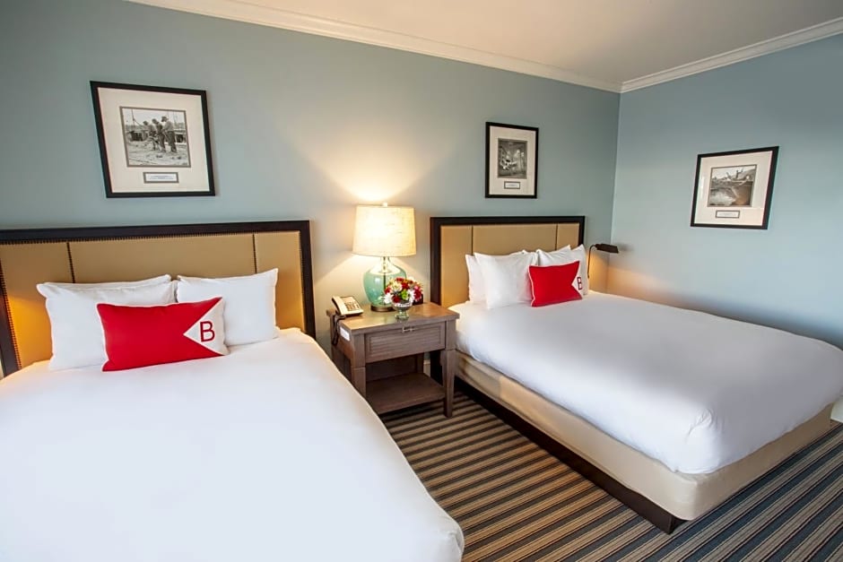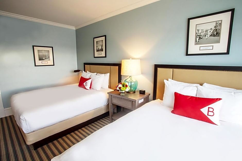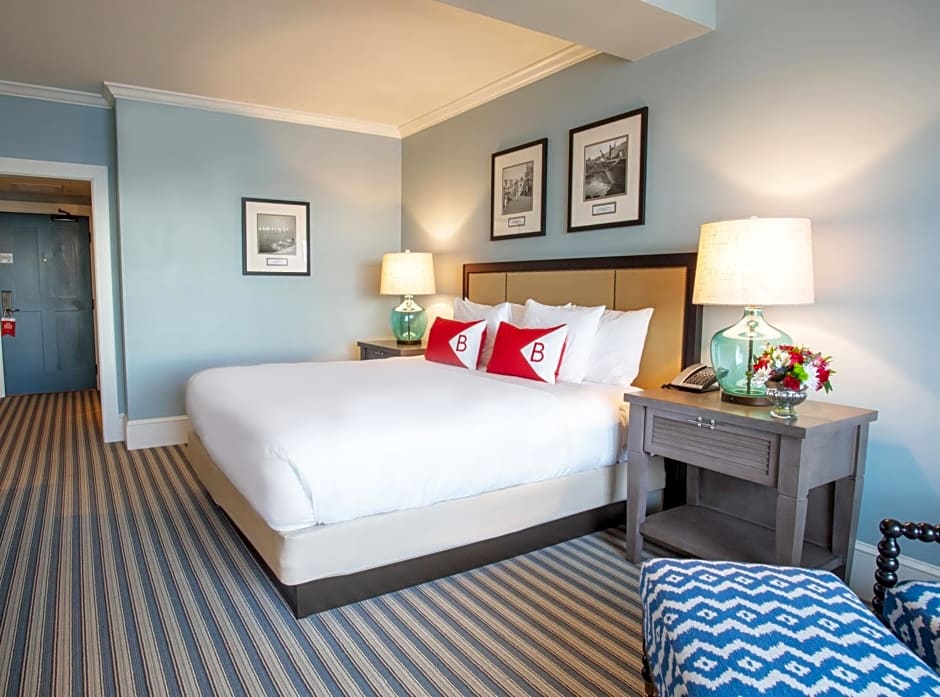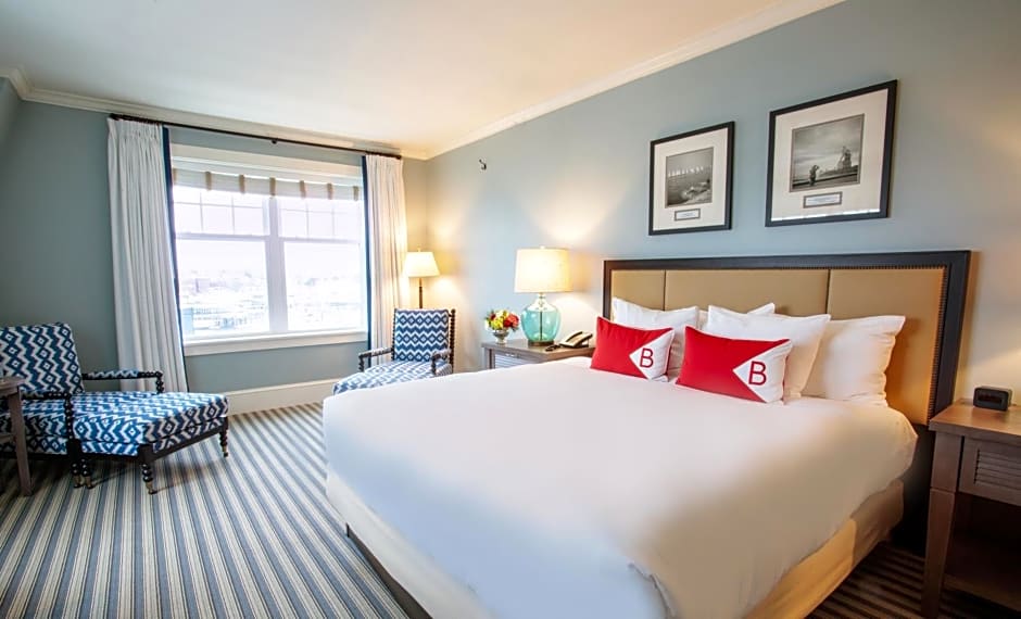 This room offers views of the historic city of Gloucester and partial views of the inner harbor. Linens and non-allergenic pillows, cotton bath towels, marble accented bathrooms and L’Occitane bath products are offered.
