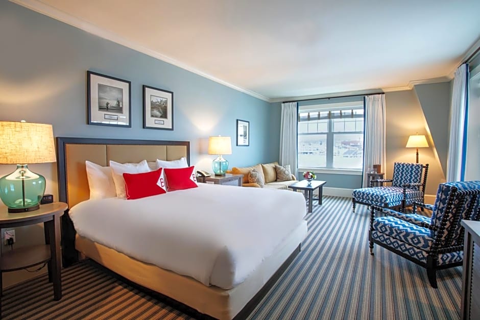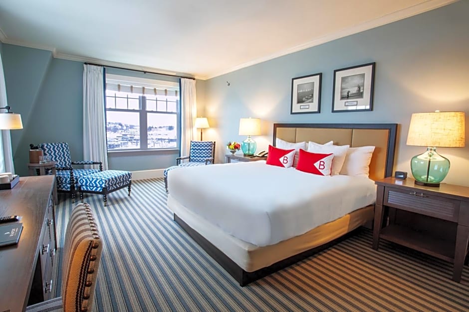 This room offers views of the historic city of Gloucester and partial views of the inner harbor. Linens and non-allergenic pillows, cotton bath towels, marble accented bathrooms and L’Occitane bath products are offered.